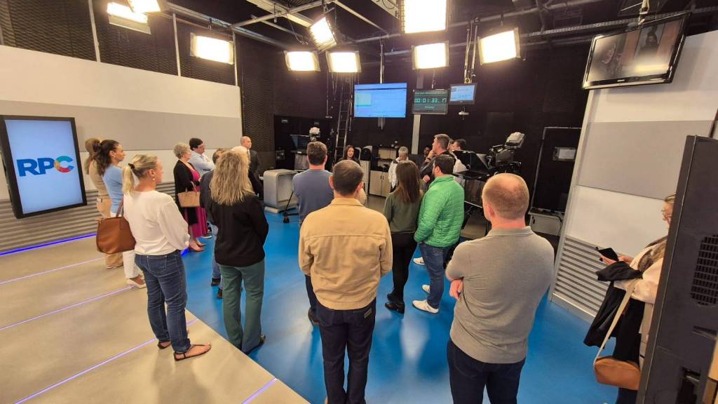 O companheiro Fábio Catafesta convidou os companheiros para conhecerem o seu local de trabalho: Rede Paraense de Comunicação - RPC Foz do Iguaçu. Os companheiros conheceram o estúdio de gravação do Jornal do Meio Dia e demais salas da empresa. Explicou como é o funcionamento de uma emissora de TV e respondeu a várias dúvidas dos companheiros.
