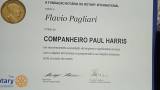 Flávio Pagliari por sua vez expressou sua gratidão e alegria pelo recebimento do Título Companheiro Paul Harris, agradecendo aos companheiros de clube por todo apoio desde que tornou-se Rotariano e especialmente enquanto foi presidente.
