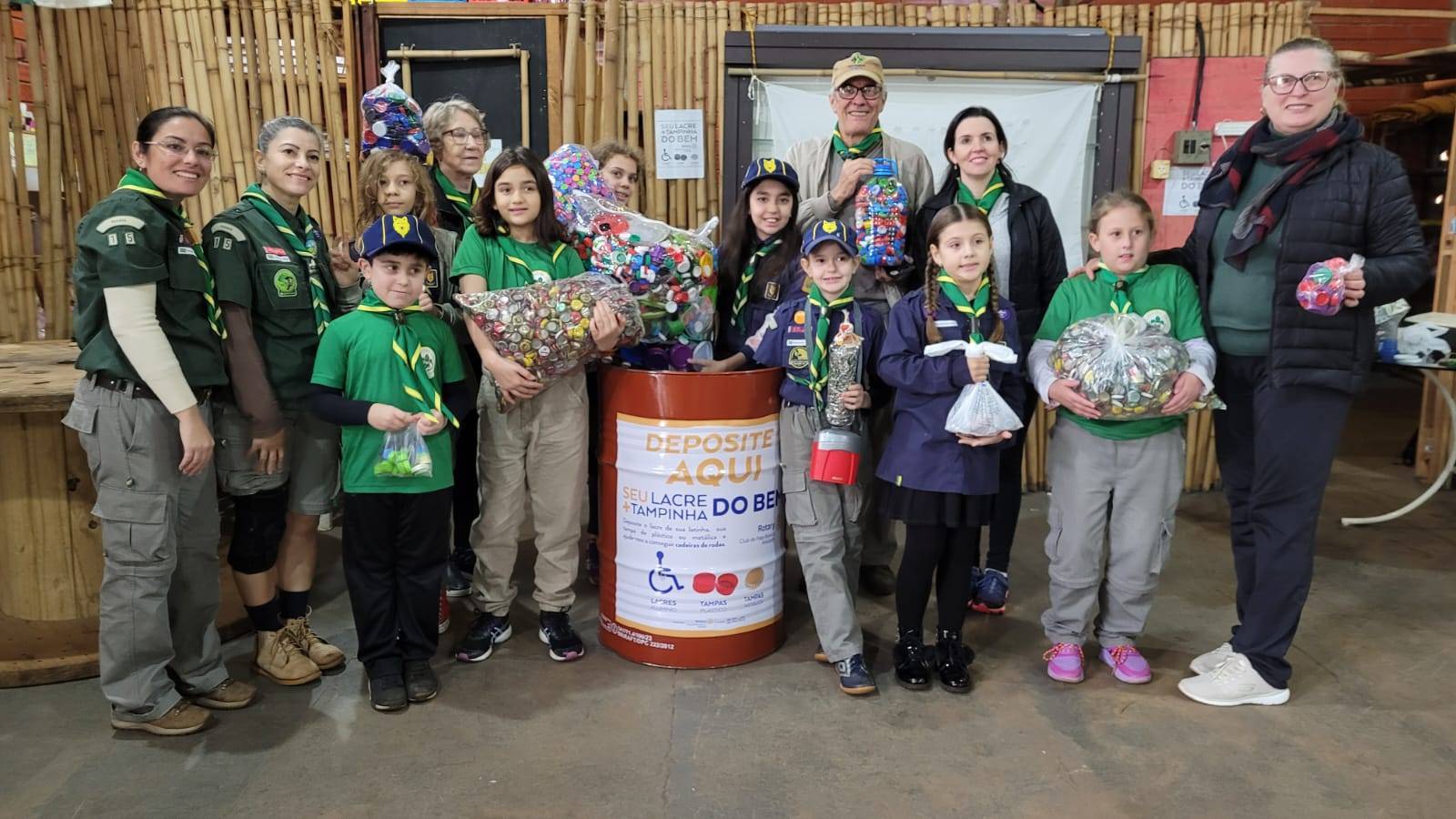 No sábado, 06 de julho de 2024, o Grupo Escoteiros Coroados teve a honra de receber a visita de dois representantes do Rotary Club de Pato Branco-Amizade: Fabio Brignol de Moraes e Ivanete Bonetti de Moraes. A visita teve um propósito especial, que foi o de estabelecer uma nova parceria com os lobinhos do grupo em uma campanha de coleta de tampinhas e lacres. Esse material arrecadado será posteriormente trocado por cadeiras de rodas, beneficiando pessoas necessitadas.