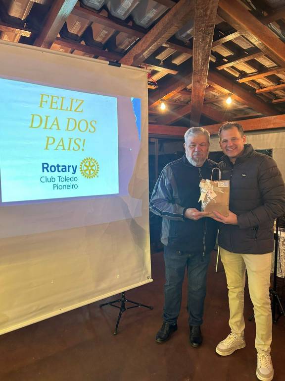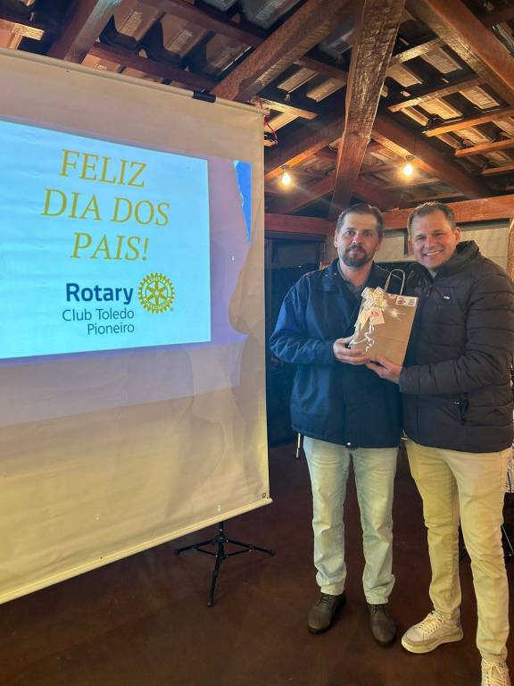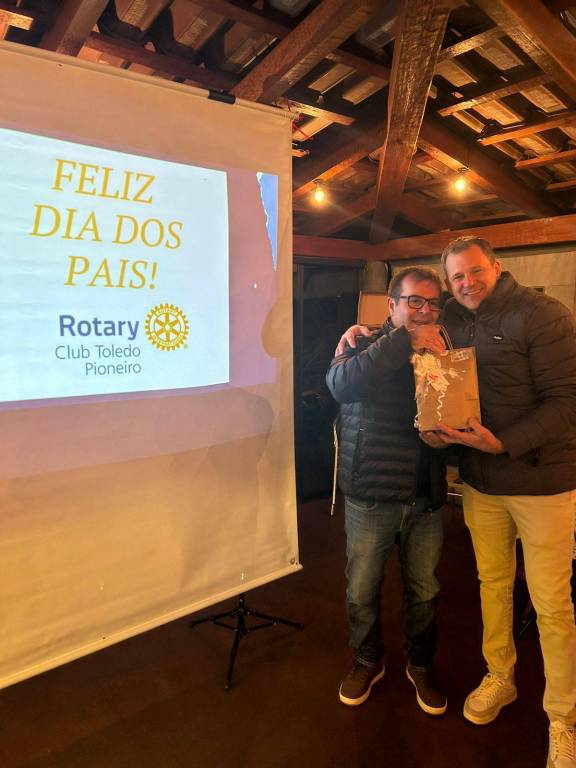 NO ULTIMO DIA 09/08/2024, O ROTARY CLUB DE TOLEDO PIONEIRO ESTEVE REUNIDO NA QUEIJARIA ÁTANI, PARA COMEMORAR O DIA DOS PAIS ROTARIANOS. NO EVENTO ESTEVE PRESENTE OS ROTARIANOS E SEUS FAMILIARES, E TEVE SURPRESAS E MUITA EMOÇÃO, A DIRETORIA PRESENTEOU OS PAPAIS DO CLUB COM FOTOS E VIDEOS DE SEUS FILHOS, QUE FOI APRESENTANDO NO EVENTO. NO FINAL, O PRESIDENTE WALMIR FOGAÇA KITAISKI PRESENTOU OS PAPAIS COM UMA XICARA PERSONALIZADA.