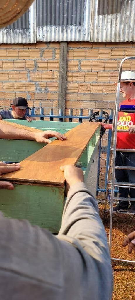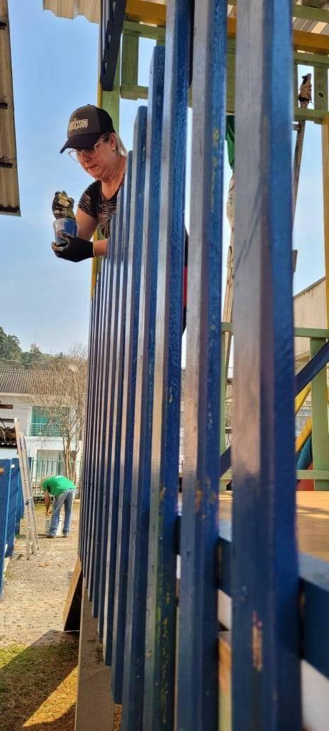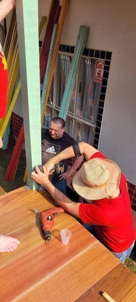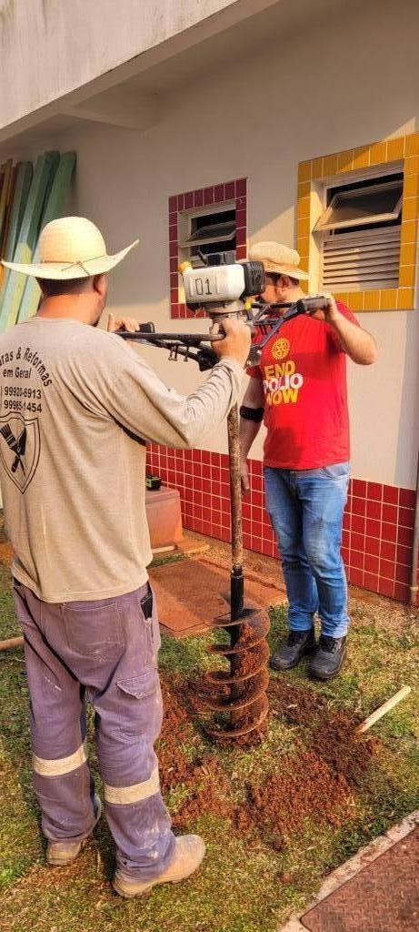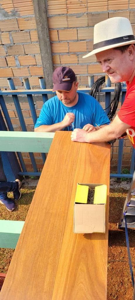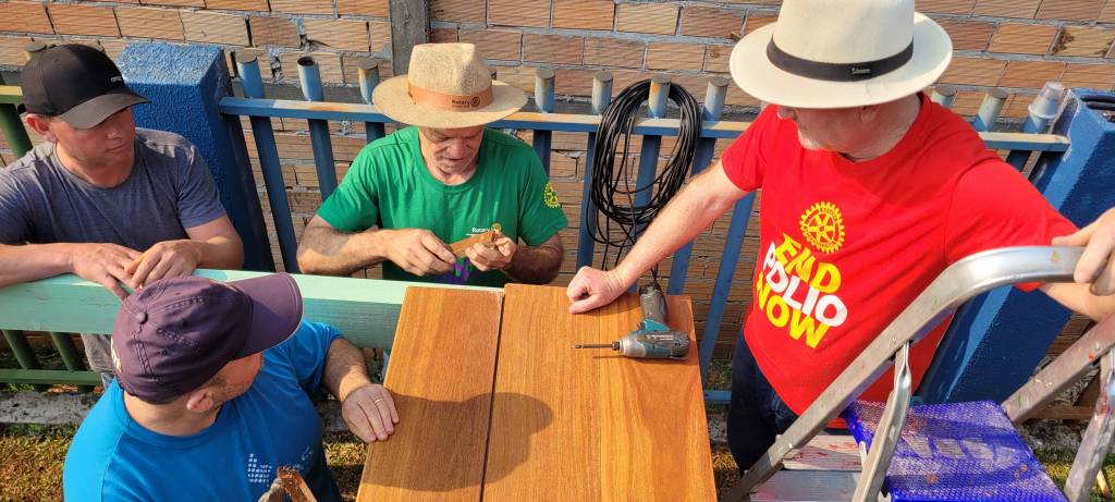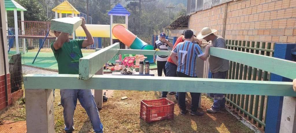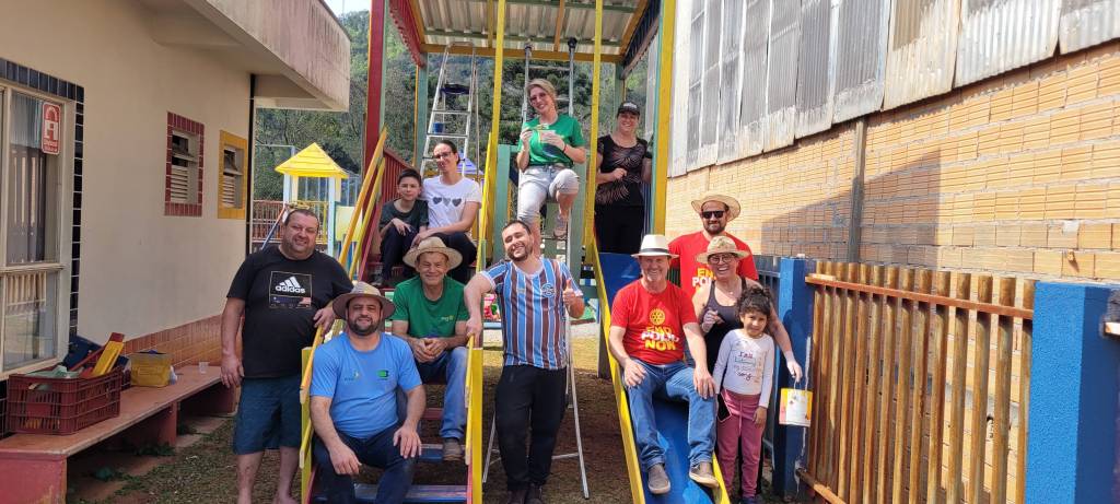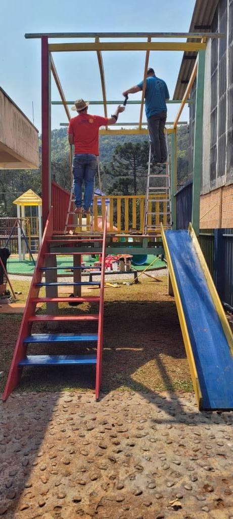 Os integrantes do Rotary Club Francisco Beltrão - Industrial, construíram uma casinha em volta de uma árvore no Centro Municipal de Educação Infantil (Cmei) Luiz Carlos Santos da Silva, (Tio Didio) no Bairro Jardim Seminário.