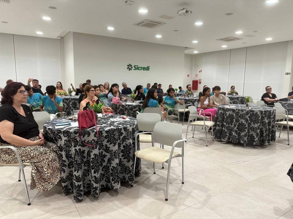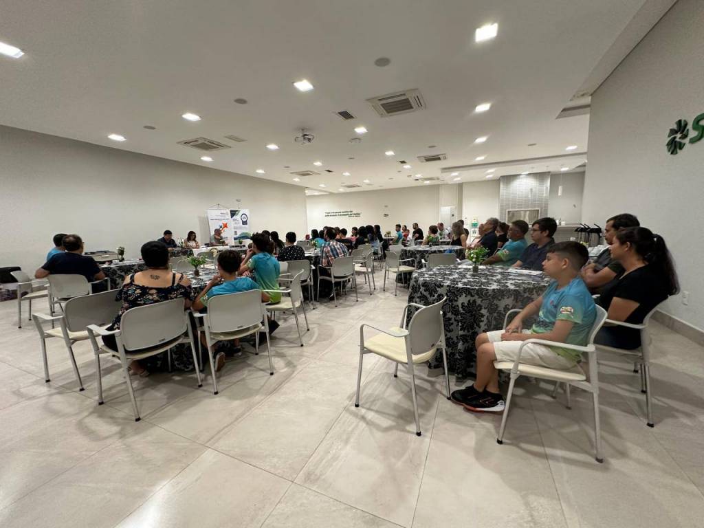 Compareceram na reunião os alunos, familiares e professores do Projeto Tenista de Valor. Hoje o projeto atende 20 criançase adolescentes de 8 a 18 anos, com treinos diários e semanais e contam com a orientação do professor Caliu e do professor e coordenador Jimmy.