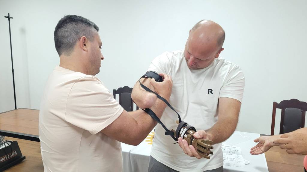 O companheiro André perdeu parte do braço direito em um acidente de trabalho, e a prótese representa uma nova oportunidade para recuperar sua autonomia. Desenvolvida para ser funcional e acessível, permitirá que ele realize diversas atividades e tarefas do dia a dia que antes eram mais difíceis.