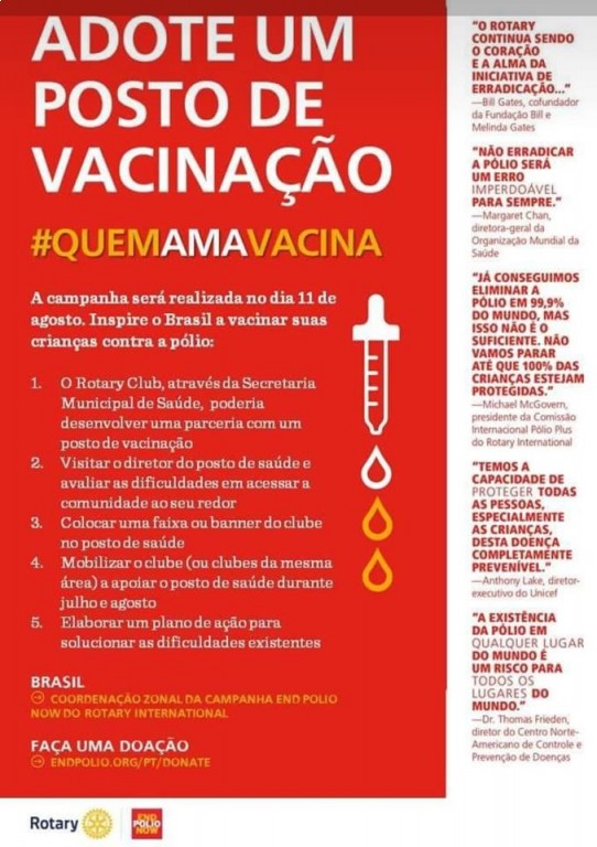 Em 2018, a campanha de multivacinação será realizada de 06 a 31 de agosto, sendo o "D" 18 de agosto. Em Foz do Iguaçu, a parceria de vacinação está sendo realizada com a Prefeitura Municipal através da Secretaria de Saúde e toda a família rotária iguaçuense.