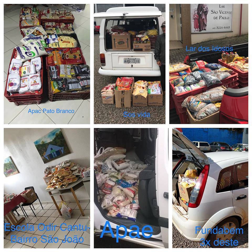 Esta semana realizamos a doação dos alimentos arrecadados em conjunto com o Clube de Veículos Antigos de Pato Branco. Seis entidades beneficentes de Pato Branco receberam doações que chegaram a um total de 3.800kg de alimentos.