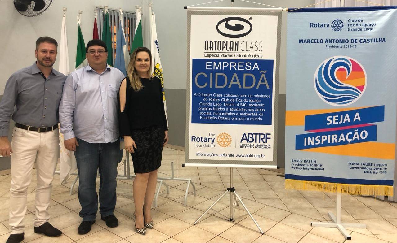 Na reunião ordinária do dia 18 de setembro do Rotary Club de Foz do Iguaçu-Grande Lago sob a presidência do companheiro Marcelo Antonio de Castilha, sob o lema Seja a Inspiração, do ano rotário 2018/2019, a empresa Ortoplan Class tornou-se parceira do programa Empresa Cidadã, com a presença do Dr. Alessandro Schwertner e sua esposa Dra. Renata Schwertner.