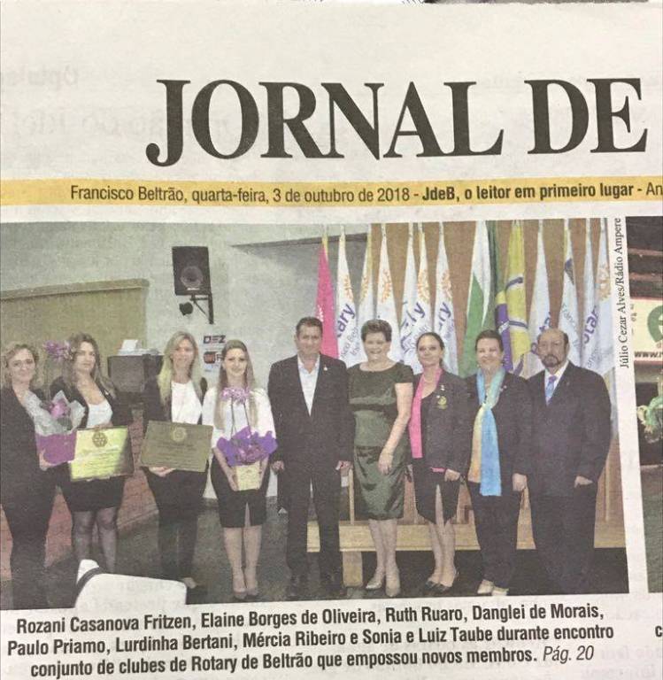 No dia primeiro de outubro de 2018, na Furbe com a visita da Governadora Sonia e reunião conjunta com os: Rotary Club de Francisco Beltrão Cango, Rotary Club de Francisco Beltrão III Milênio e Rotary Club de Francisco Beltrão Cidade Norte o qual deu posse a duas novas Integrantes, Eliane Adria e Dangley de Morais que apartir desta data serão as mais novas companheiras rotarianas.
